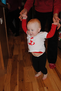 What wasn't so great, was having to send dad off to work:( I crawled over to the door when he left, stood up, and started pounding on it...trying to get him to come back! It didn't work:/